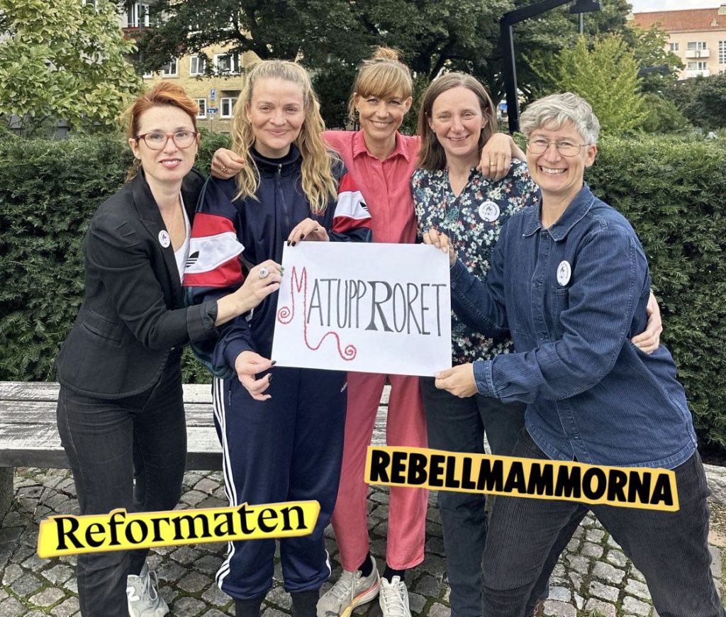 Matupproret lanserades i Malmö den 4 oktober 2025 som ett initiativ av arbetsgruppen Rebellmamorna, Matupproret och Reformaten. Från vänster: Tatjana Boric-Persson (Rebellmammorna), Olga Lund Grönvall (grundare av Reformaten), Lova Brodin (VD för Miljömatematik), Kathrin Theelen (Rebellmammorna) och Sara Nilsson Lööv (Rebellmammorna). Sedan dess har Matupproret-gruppen fått en till medlem: Carl Bästad (rebellpappa och grundare av Fund your mother).
